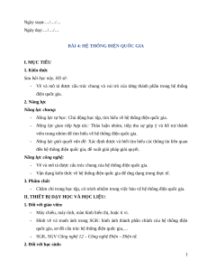 BÀI 4: HỆ THỐNG ĐIỆN QUỐC GIA I. MỤC TIÊU 1. Kiến thức