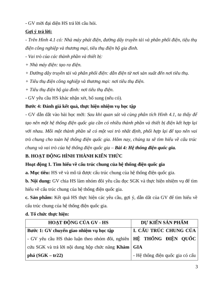 Giáo án Bài 4: Hệ thống điện quốc gia Công nghệ Điện Điện tử 12 Kết nối tri thức