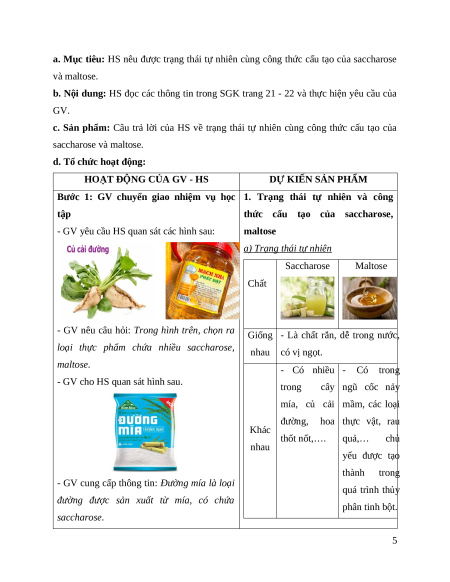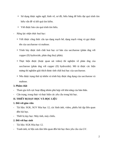 - Trình bày được ứng dụng của saccharose và maltose. 2. Năng lực