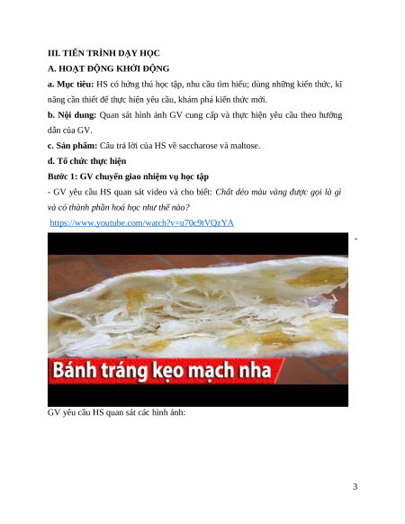 + Nêu được trạng thái tự nhiên và trình bày được ứng dụng của saccharose và maltose. 3. Phẩm chất