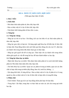 Giáo án Bài 4 Hóa học 7 Cánh diều: Phân tử, đơn chất, hợp chất