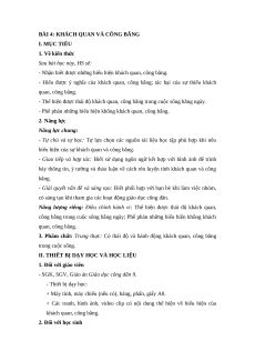 BÀI 4: KHÁCH QUAN VÀ CÔNG BẰNG I. MỤC TIÊU 1. Về kiến thức