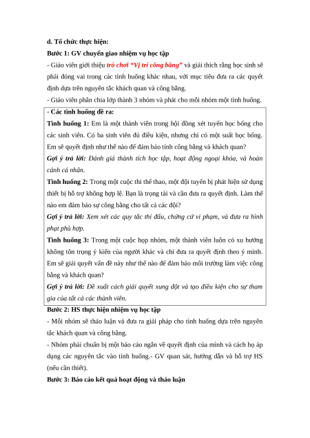 - Khuyến khích học sinh áp dụng các nguyên tắc khách quan và công bằng