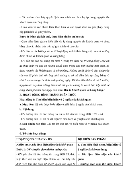 Giáo án Bài 4: Khách quan và công bằng Giáo dục công dân 9 Cánh diều