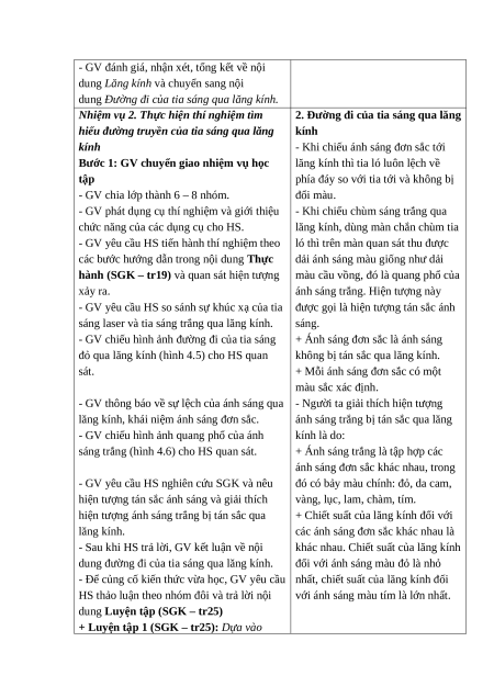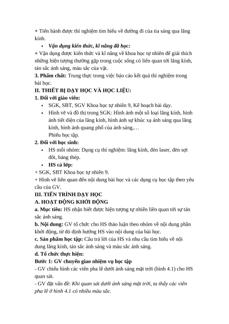 - HS giải thích được một cách định tính sự tán sắc ánh sán mặt trời qua lăng kính.