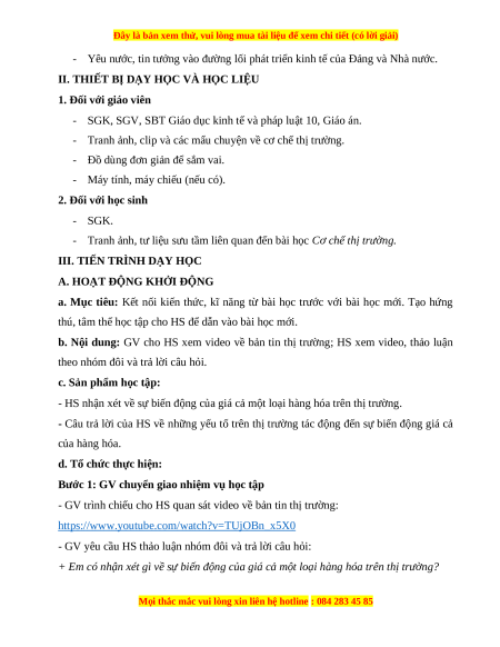 Giáo án Bài 4 KTPL 10 Kết nối tri thức: Cơ chế thị trường