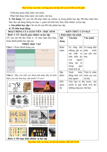- Bước 1: GV chuyển giao nhiệm vụ học tập 1. Khái niệm văn minh