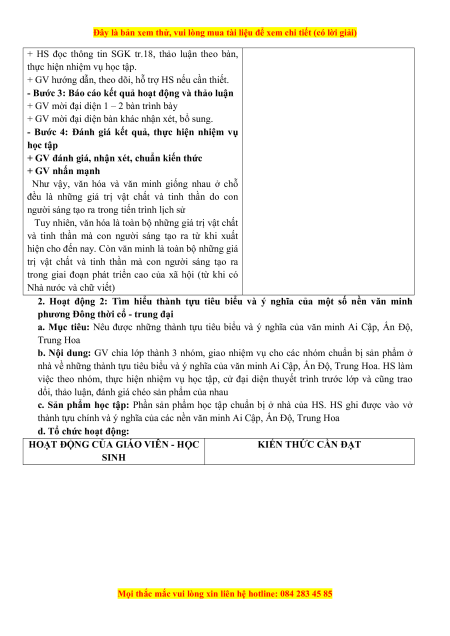 GV yêu cầu HS đọc SGK tr. 18, thảo luận theo bàn, Nội Văn hóa Văn minh