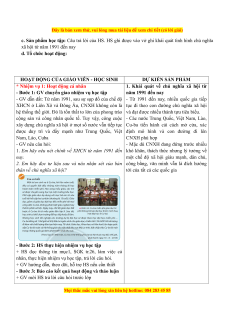 - Nêu được nét chính về chủ nghĩa xã hội từ năm 1991 đến nay.