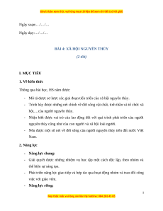 BÀI 4: XÃ HỘI NGUYÊN THỦY (2 tiết) I. MỤC TIÊU 1. Về kiến thức