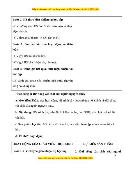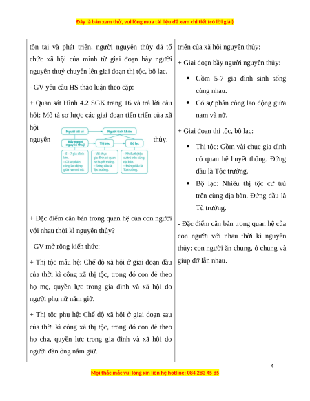 Giáo án Bài 4 Lịch sử 6 Cánh diều (2024): Xã hội nguyên thủy