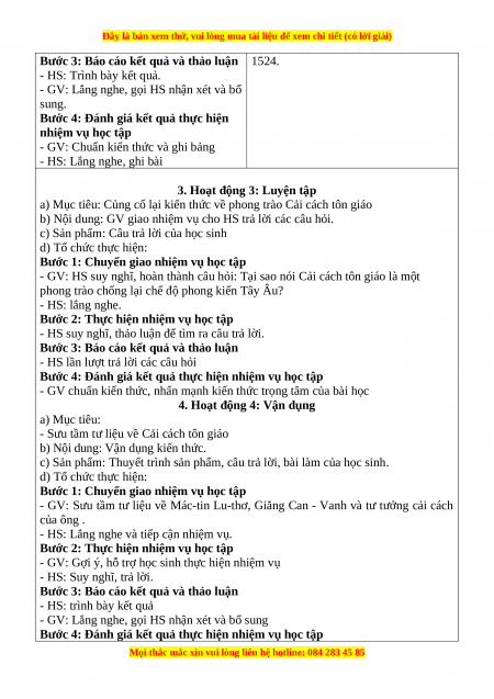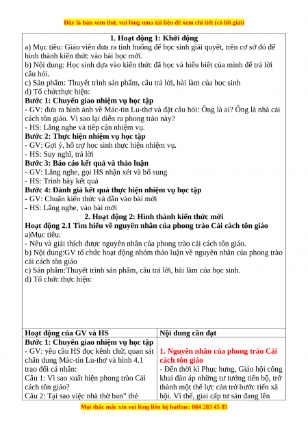 Giáo án Bài 4 Lịch sử 7 Cánh diều (2024): Phong trào cải cách tôn giáo