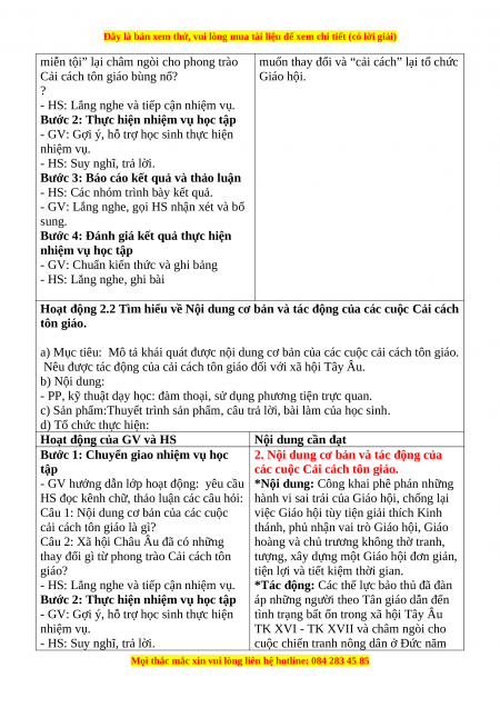 Hoạt động 2.2 Tìm hiểu về Nội dung cơ bản và tác động của các cuộc Cải cách tôn giáo.