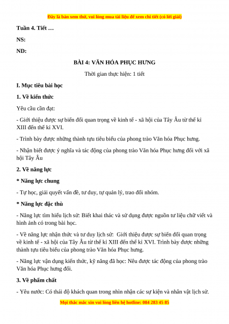- Nhận biết được ý nghĩa và tác động của phong trào Văn hóa Phục hưng đối với xã hội Tây Âu 2. Về năng lực * Năng lực chung