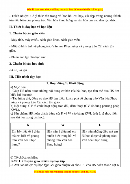 - Tạo hứng thú, động cơ cho HS tìm hiểu, khám phá về phong trào Văn hóa Phục