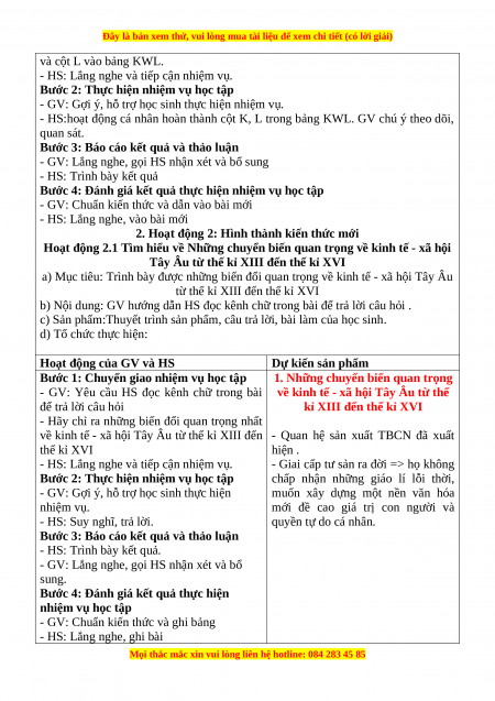 - Giới thiệu được sự biến đổi quan trọng về kinh tế - xã hội của Tây Âu từ thế kỉ XIII đến thế kỉ XVI.
