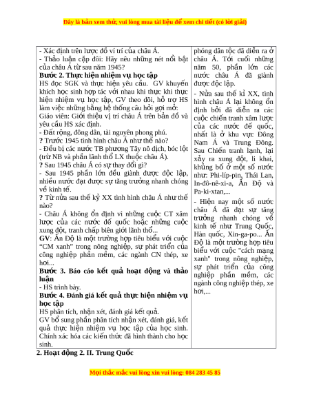 Đây là bản xem th , vu ử i lòng mua tài li u ệ đ xe ể m chi ti t (c ế ó l i ờ gi i ả ) - Xác định trên lư c đ ợ ví ồ trí c a ủ châu Á. phóng dân t c ộ đã di n ễ ra ở - Th o ả lu n ậ c p ặ đôi: Hãy nêu nh ng ữ nét n i ổ b t ậ châu Á. T i ớ cu i ố nh ng ữ c a ủ châu Á t s ừ au năm 1945? năm 50, ph n ầ l n ớ các