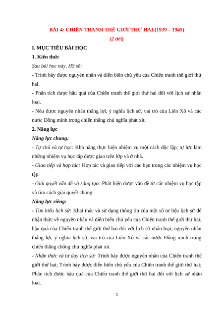 BÀI 4: CHIẾN TRANH THẾ GIỚI THỨ HAI (1939 – 1945) (2 tiết)