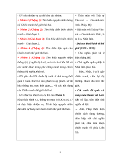 - GV tổ chức cho HS làm việc nhóm theo mô hình Chiến tranh thế giới thứ