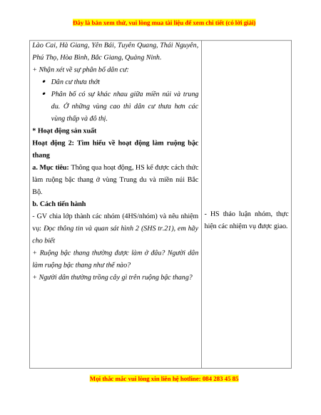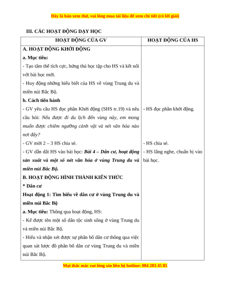 - Huy động những hiểu biết của HS về vùng Trung du và miền núi Bắc Bộ. b. Cách tiến hành