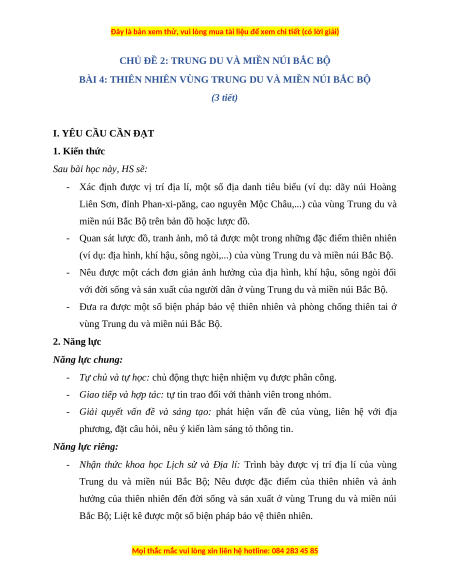 vùng Trung du và miền núi Bắc Bộ. 2. Năng lực