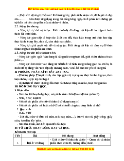 - Phương pháp: Thuyết trình, vấn đáp, gợi mở, trực quan, thực hành sáng tạo, thảo
