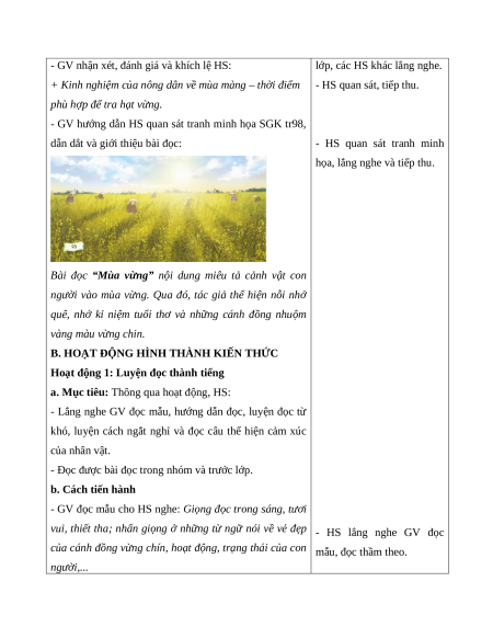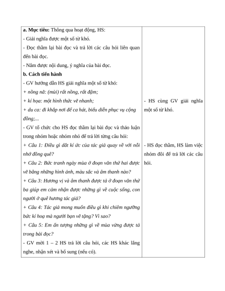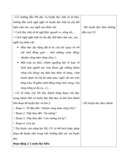 - Đọc được bài đọc trong nhóm và trước lớp. b. Cách tiến hành