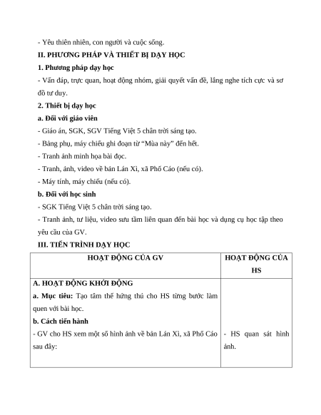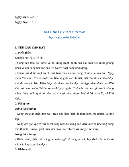 Giáo án Bài 4: Ngày xuân Phố Cáo Tiếng Việt lớp 5 Chân trời sáng tạo