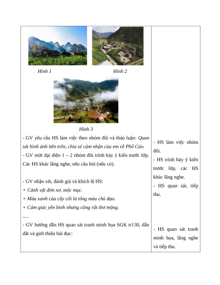 - GV cho HS xem một số hình ảnh về bản Lán Xì, xã Phố Cáo - HS quan sát hình sau đây: ảnh. Hình 1 Hình 2 Hình 3