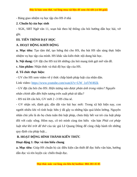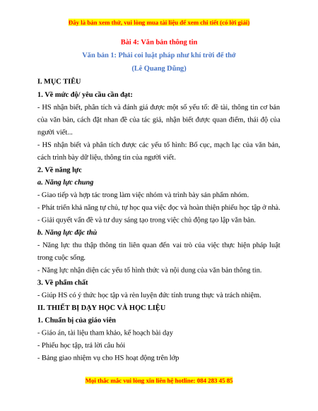 Văn bản 1: Phải coi luật pháp như khí trời để thở (Lê Quang Dũng) I. MỤC TIÊU