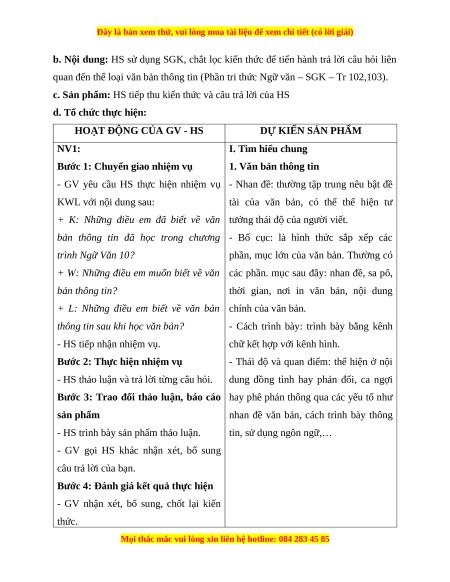 quan đến thể loại văn bản thông tin (Phần tri thức Ngữ văn – SGK – Tr 102,103).