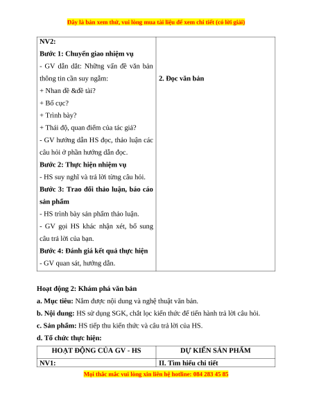 a. Mục tiêu: Nắm được nội dung và nghệ thuật văn bản.