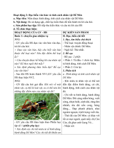 - Sau khi HS hoàn thành NV1,GV yêu cầu a. Hình dáng và tính cách nhân vật HS thực hiện NV2. Dế Mèn NV2: