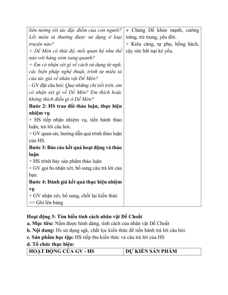 Hoạt động 2: Đọc hiểu văn bản và tính cách nhân vật Dế Mèn