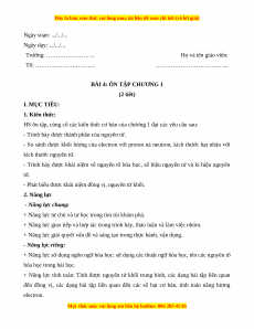 Giáo án Bài 4: Ôn tập chương 1 Hóa học 10 Kết nối tri thức