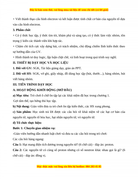 - Câu 3: D, cấu hình electron nguyên