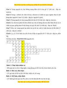 Câu 3: Trong nguyên tử, hạt không mang điện tích là hạt gì? (7 chữ cái) - đáp án: