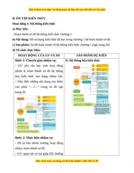 c) Sản phẩm: Sơ đồ hoàn chỉnh về hệ thống kiến thức chương 1 (sgk trang 26)