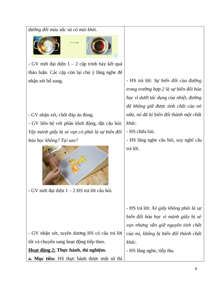 Giáo án Bài 4: Sự biến đổi hoá học của chất Khoa học lớp 5 Cánh diều