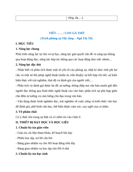 TIẾT…… : GIỚI THIỆU TRI THỨC NGỮ VĂN VÀ NỘI DUNG BÀI HỌC I. MỤC TIÊU 1. Năng lực chung