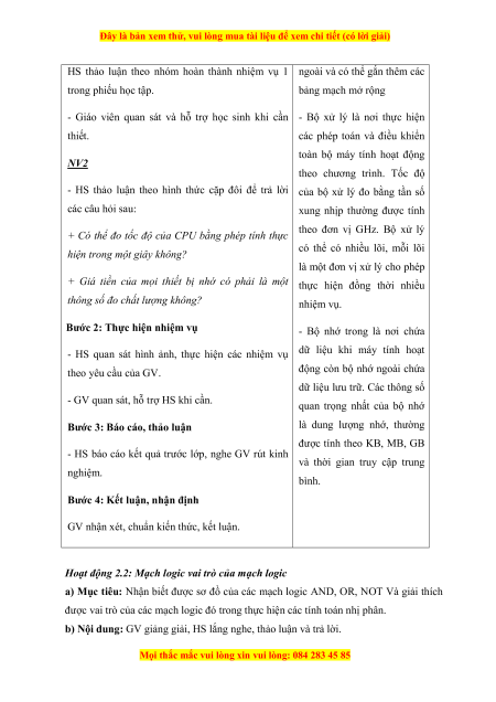 - Giáo viên quan sát và hỗ trợ học sinh khi cần - Bộ xử lý là nơi thực hiện thiết.
