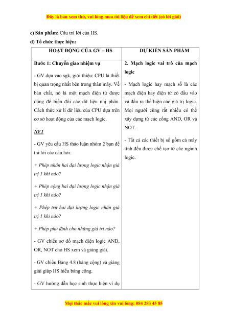 Hoạt động 2.2: Mạch logic vai trò của mạch logic