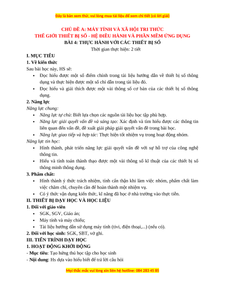 Đọc hiểu và giải thích được một vài thông số cơ bản của các thiết bị số thông dụng. 2. Năng lực Năng lực chung: