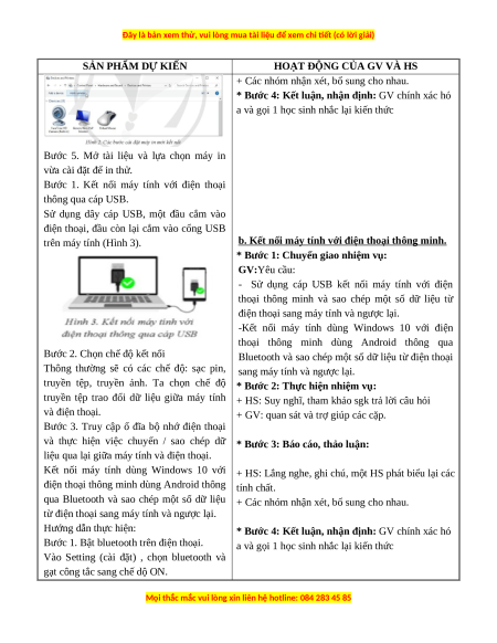 Bước 1. Bật nguồn cho máy tính và máy * Bước 1: Chuyển giao nhiệm vụ: in.