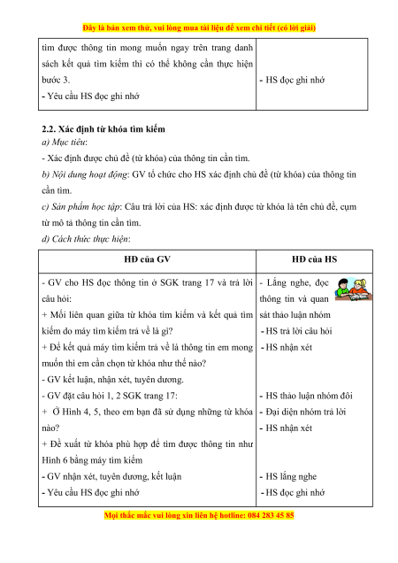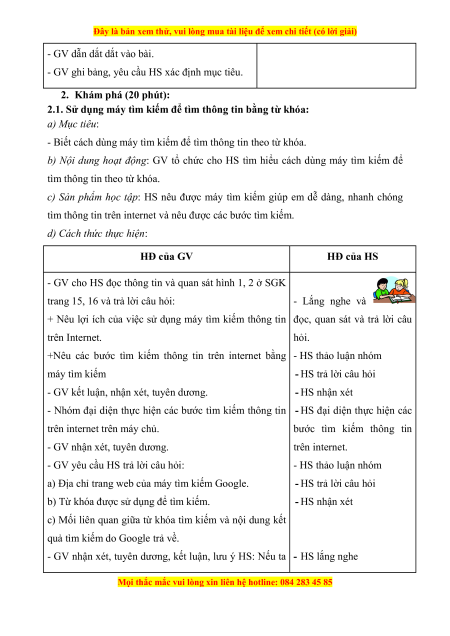 2.1. Sử dụng máy tìm kiếm để tìm thông tin bằng từ khóa: a) Mục tiêu: