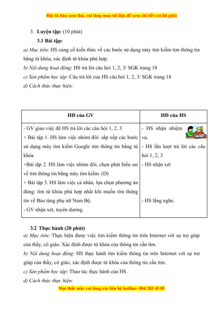 Đây là bản xem thử, vui lòng mua tài liệu để xem chi tiết (có lời giải) 3. Luyện tập: (10 phút) 3.1 Bài tập:
