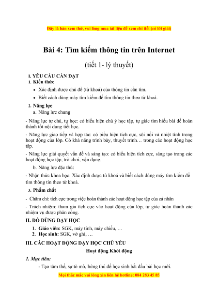 Hoạt động 1: Tìm kiếm thông tin trên Internet 1. Mục tiêu:
