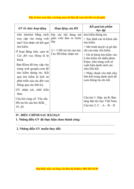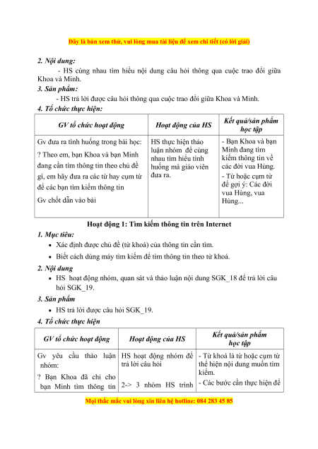 Đây là bản xem thử, vui lòng mua tài liệu để xem chi tiết (có lời giải) Kết quả/sản phẩm GV tổ chức hoạt động Hoạt động của HS học tập