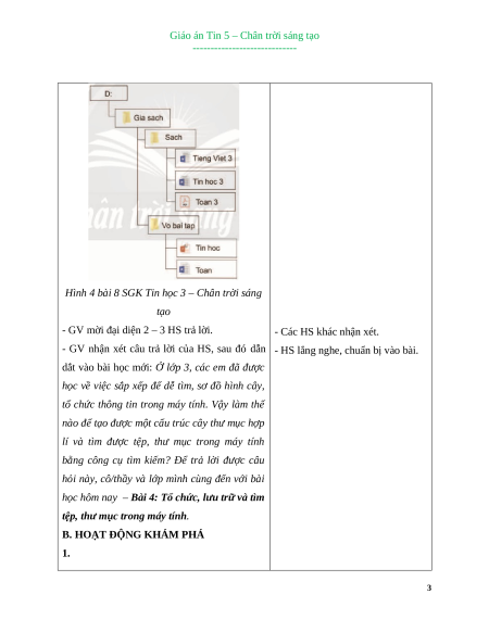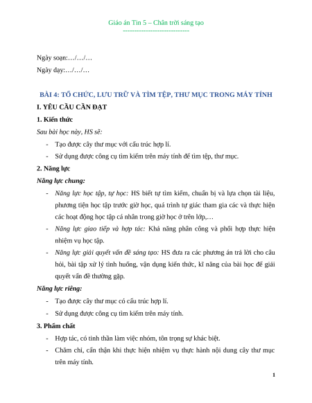 Giáo án Bài 4: Tổ chức, lưu trữ và tìm tệp, thư mục trong máy tính Tin học lớp 5 Chân trời sáng tạo