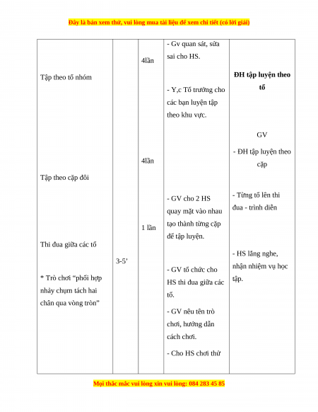 - Phương pháp dạy học chính: Làm mẫu, sử dụng lời nói, tập luyện, trò chơi và thi